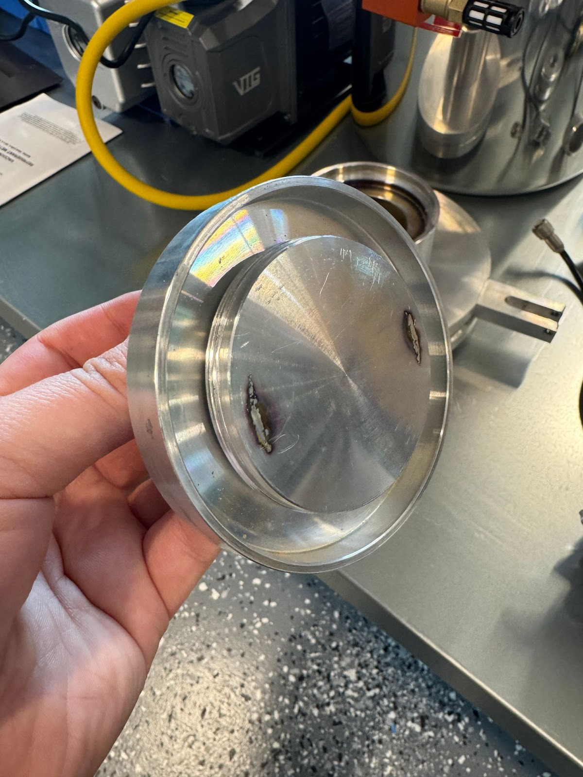 We took this glass over to S&S Optical here in town, who lapped down the entire surface of the bottom glass about 2mm. This resolved the chip which will let us pull vacuum, and also eliminated the risk of violent disassembly of glass components. As an aside, these guys were some of the most professional and knowledgeable people I have had the pleasure of talking to. These guys are working on some insane projects partnered with national laboratories. To call S&S a glass company would be insulting, they are straight up optical wizards and I am pretty sure they can make anything out of glass. Shoutout to my man Scott!